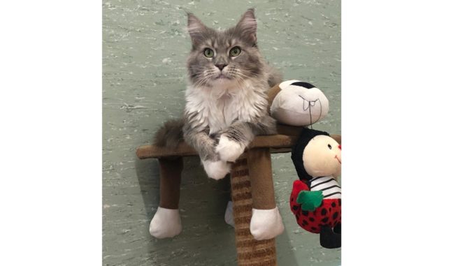 Die tapfere Luxi ist hochschwanger und viel zu dünn mit den anderen 40 Maine Coons zu uns gekommen.