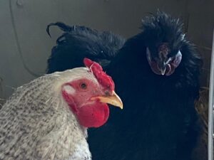 Diese beiden wunderschöne Hähne sind etwa ein Jahr alt. Bei dem schwarzen handelt es sich um einen Zwergseidenhahn. Die beiden sind ca. ein Jahr alt und möchten dringendst in ein passendes Zuhause umziehen.