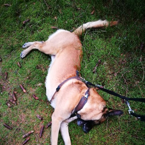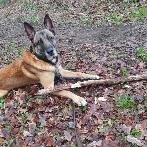Meine aktuellen Besitzer habe ich leider auch schon aus Stress gebissen, aber ich hoffe, dass sich trotzdem jemand traut, mit mir zu arbeiten. Denn eigentlich bin ich kein schlechter Kerl – wenn ich einmal angekommen bin und Vertrauen gefasst habe, bin ich sehr anhänglich und verschmust. Ich habe einen super Grundgehorsam und kann natürlich alle Basics, also Sitz, Platz, Bleib, Nein, Zurück, Hier Her, Auf die Decke, Pfote und noch ein paar Sachen mehr. Leinenführigkeit klappt mittlerweile gut. Ich laufe zwar immer eine Hundelänge voraus, aber schon viel besser als vor ein paar Wochen. Nur am Anfang, da ziehe ich noch ein bisschen, aber da muss es ja auch manchmal schnell gehen… Ich kann auch mit meinem Herrchen Fahrrad fahren und für eine Runde Spielen bin ich immer zu haben. Das Training mit dem Maulkorb klappt auch super, da gibt’s immer ganz viel Leberwurst. Bei meinem ersten Herrchen fand ich Autofahren richtig super, aber das habe ich in meinem aktuellen zu Hause noch nicht probiert. Ich war wohl bei meinem ersten Besitzer im Schutzdienst und Mantrailing aktiv, vielleicht magst du ja auch sowas mit mir machen?