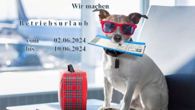 Wir verabschieden uns deshalb in der Zeit vom 02.06.2024 bis zum 10.06.2024 in den wohlverdienten Betriebsurlaub.