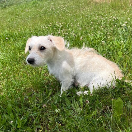 Dackel-Mix Blümchen unsere liebevolle Mami kümmert sich prächtig um die Rasselbande und möchte natürlich auch ein wunderschönes eigenes Zuhause, sobald die Kleinen ausgezogen sind. Blümchen ist ca. 4 Jahre alt und liebt Streicheleinheiten und Spielen.