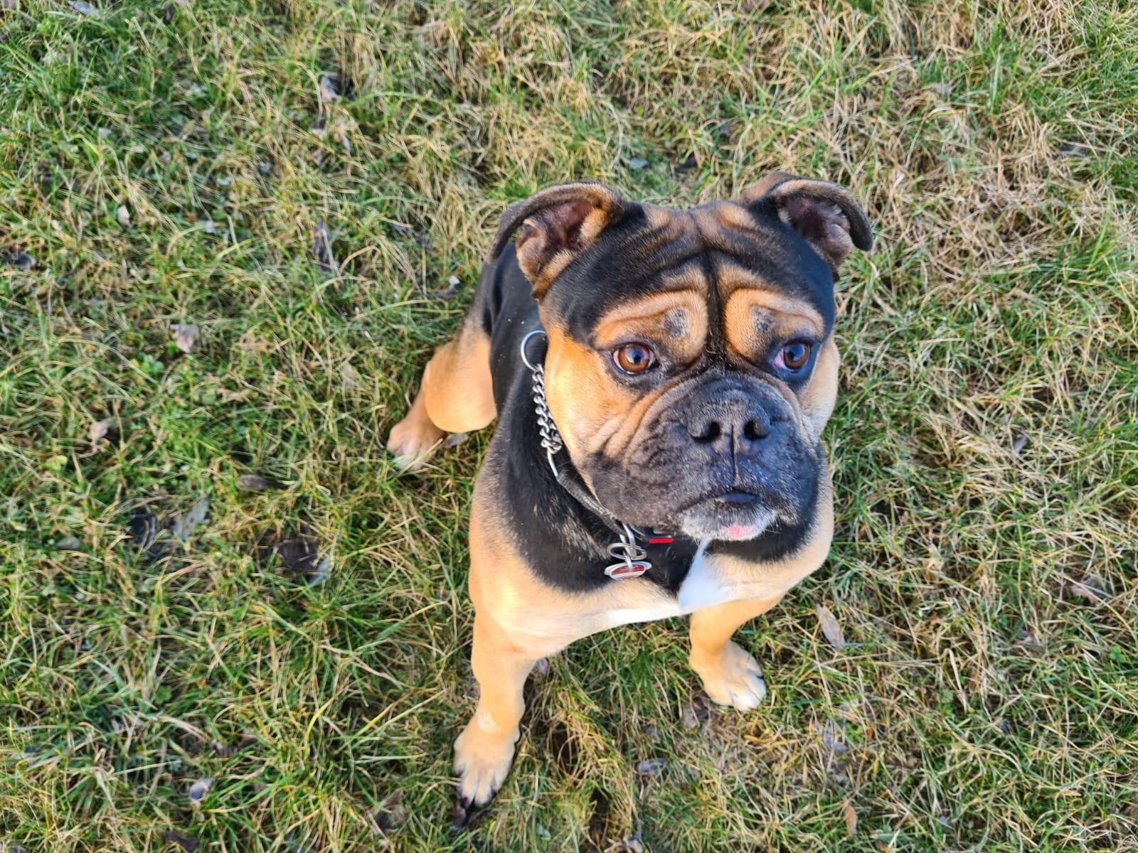 Bruno ist ein freundlicher, lieber Zeitgenosse. Er hat kein Problem mit anderen Hunden, bei Rüden entscheidet die Sympathie.
