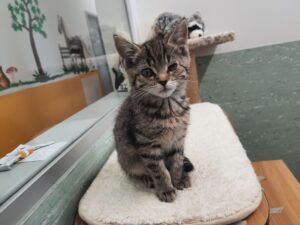 Conni ist sehr verschmust und spielt ebenfalls gerne. Wie man erkennen kann, hat Conni ein Problem mit dem linken Auge, welches aber derzeit nicht mehr behandelt werden muss – dies wird aber bleiben, schränkt aber weder beim Spielen und Toben noch beim Schmusen in irgendeiner Art und Weise ein.