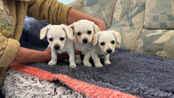 Bolle, Bienchen und Baby-Blümchen sind Dackel-Mixe und werden voraussichtlich wadenhoch – der Vater ist uns leider nicht bekannt.