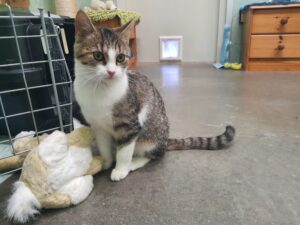 Katzenmädel Ebby ist etwas schüchterner und benötigt etwas Zeit zum Kennenlernen. Wenn das Eis erstmal gebrochen ist, genießt sie Schmuseeinheiten.