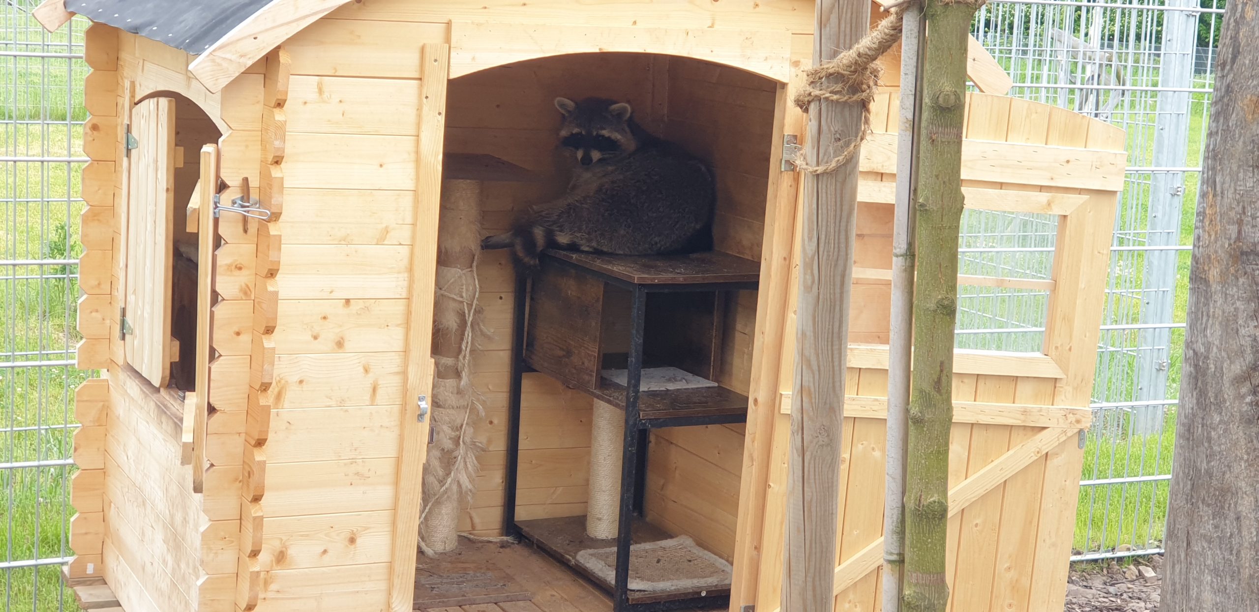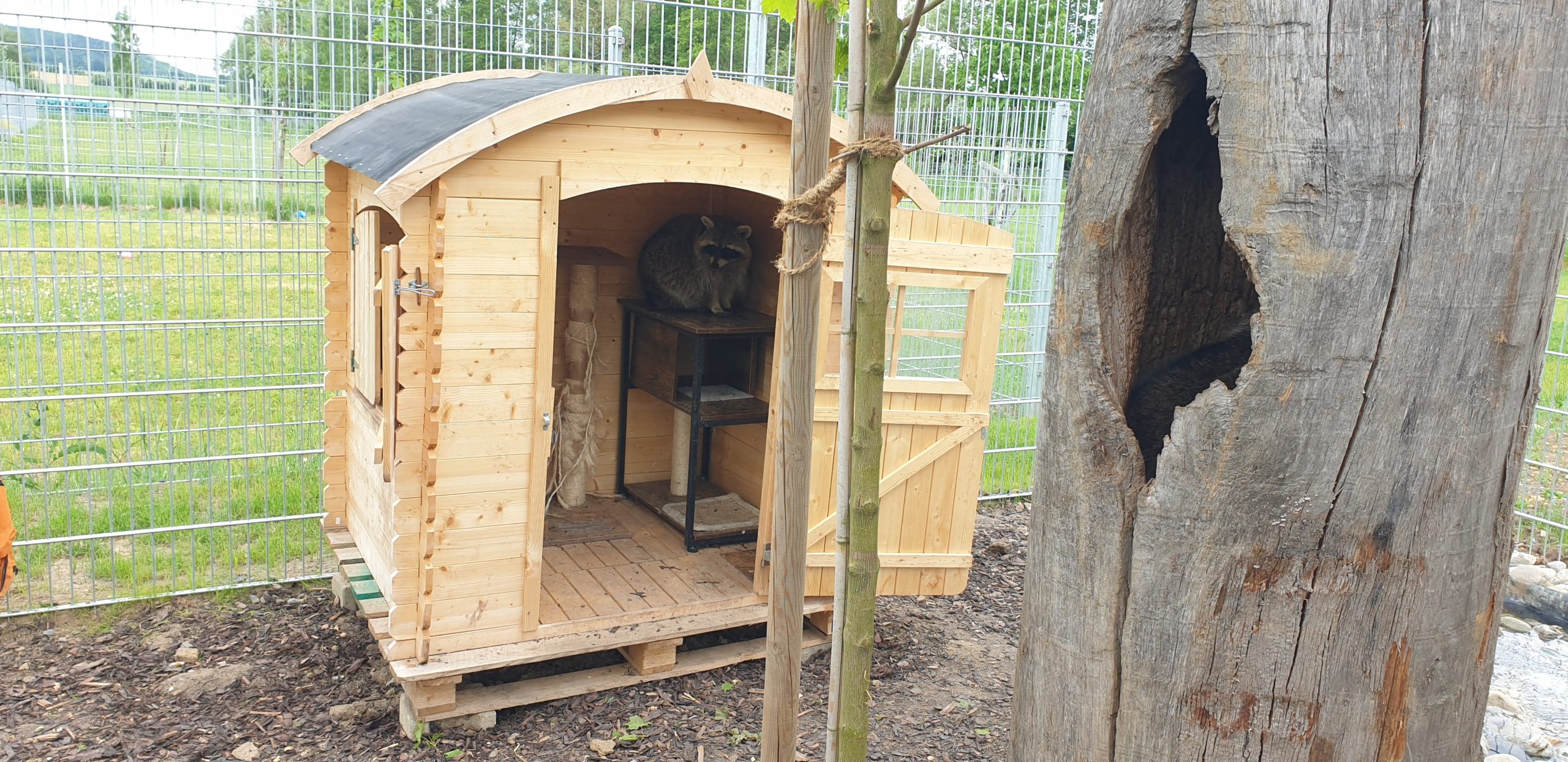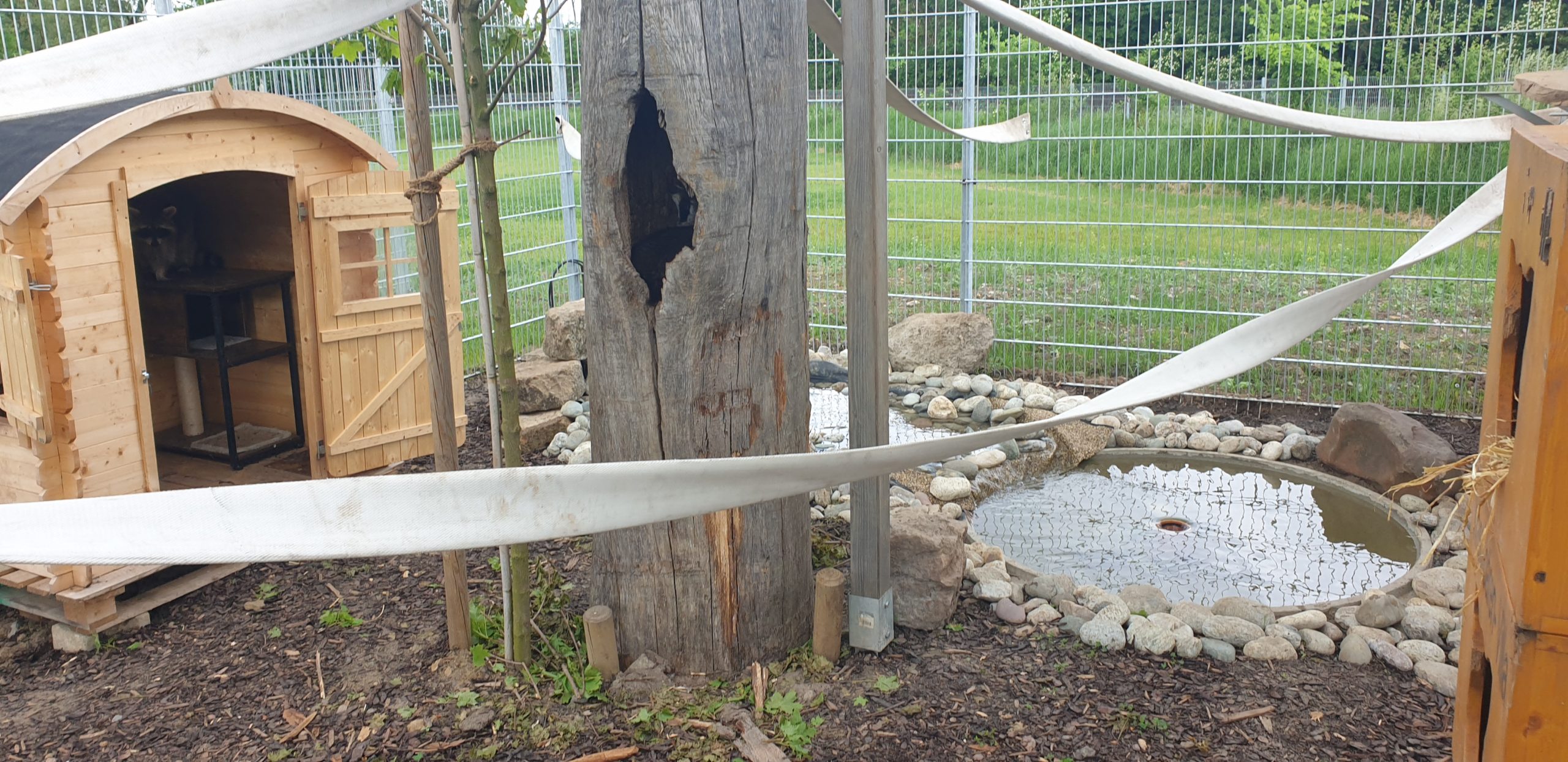 Waschbärgehege und Tierheim in 360 Grad