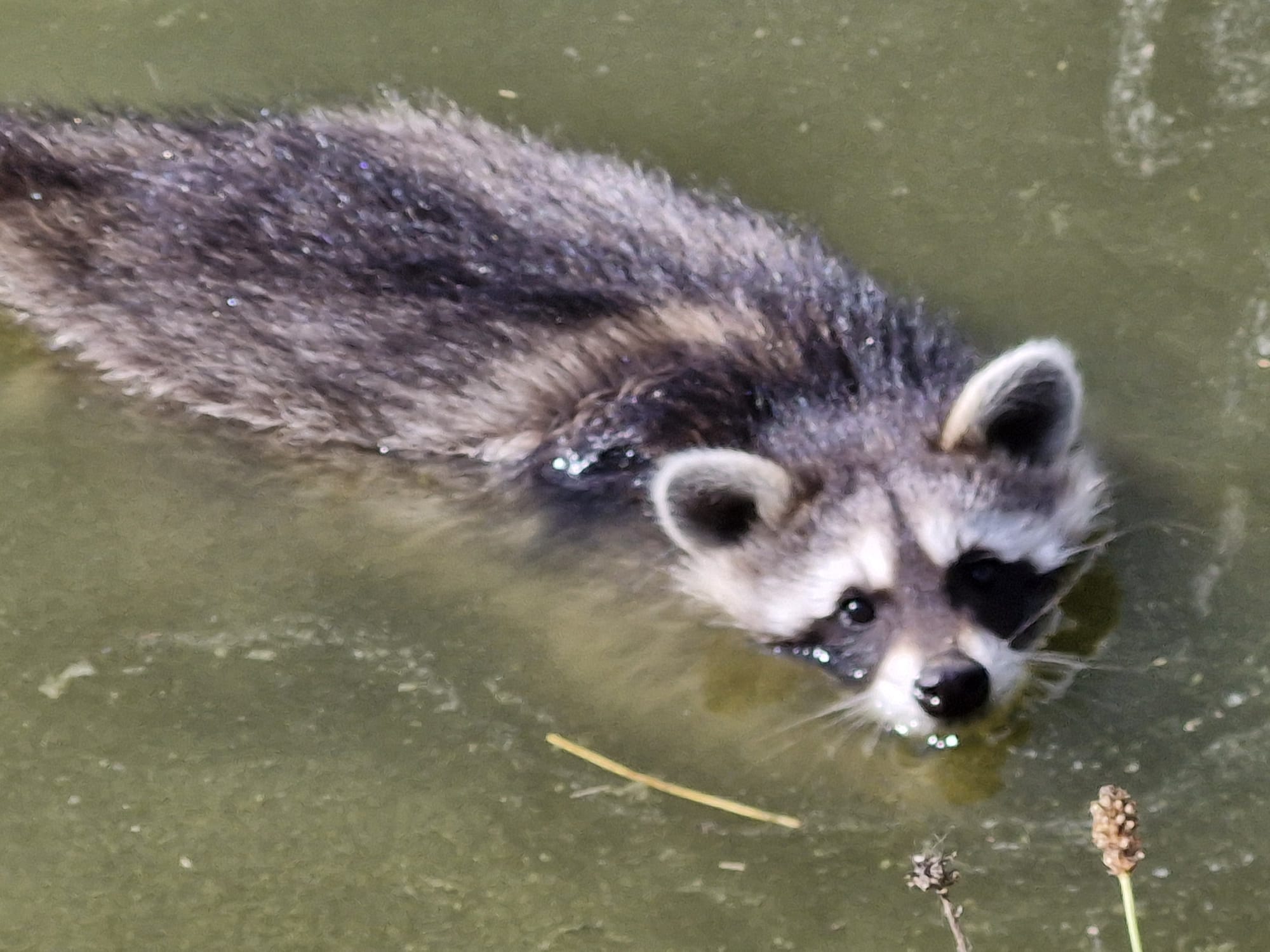 „Matze hat’s gut: Matze ahnt nicht, dass er ein Problembär ist. Er planscht an diesem Samstag fröhlich im Wasser und tut, was Waschbären eben so tun: Er reibt seine Pfötchen und „wäscht“ sein (imaginäres) Essen. Währenddessen kuschelt sich Ivy in ihrem Höhlen-Häuschen zurecht. Den Besuchern an diesem Tag, die sich das neue Waschbär-Gehege am Tierheim in Zell ansehen wollen, begegnen beide freundlich: Possierliche Felltierchen, die neugierig jeden willkommen heißen und ihn liebevoll mit winzigem Handschlag und vorwitzigem Nasenstupsen begrüßen.“
