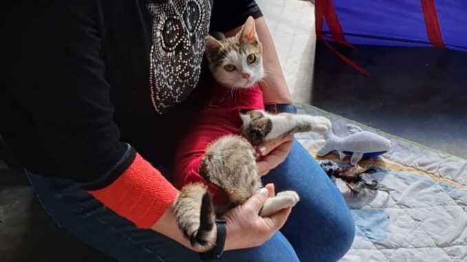 Die kleine Emma wurde ca. im September 2023 geboren und kam wohl mit einer Fehlbildung am Bein zur Welt. Dies bereitete ihr große Probleme, so dass das komplette Bein amputiert werden musste. Emma trägt derzeit noch einen Body bis die Fäden gezogen wurden.