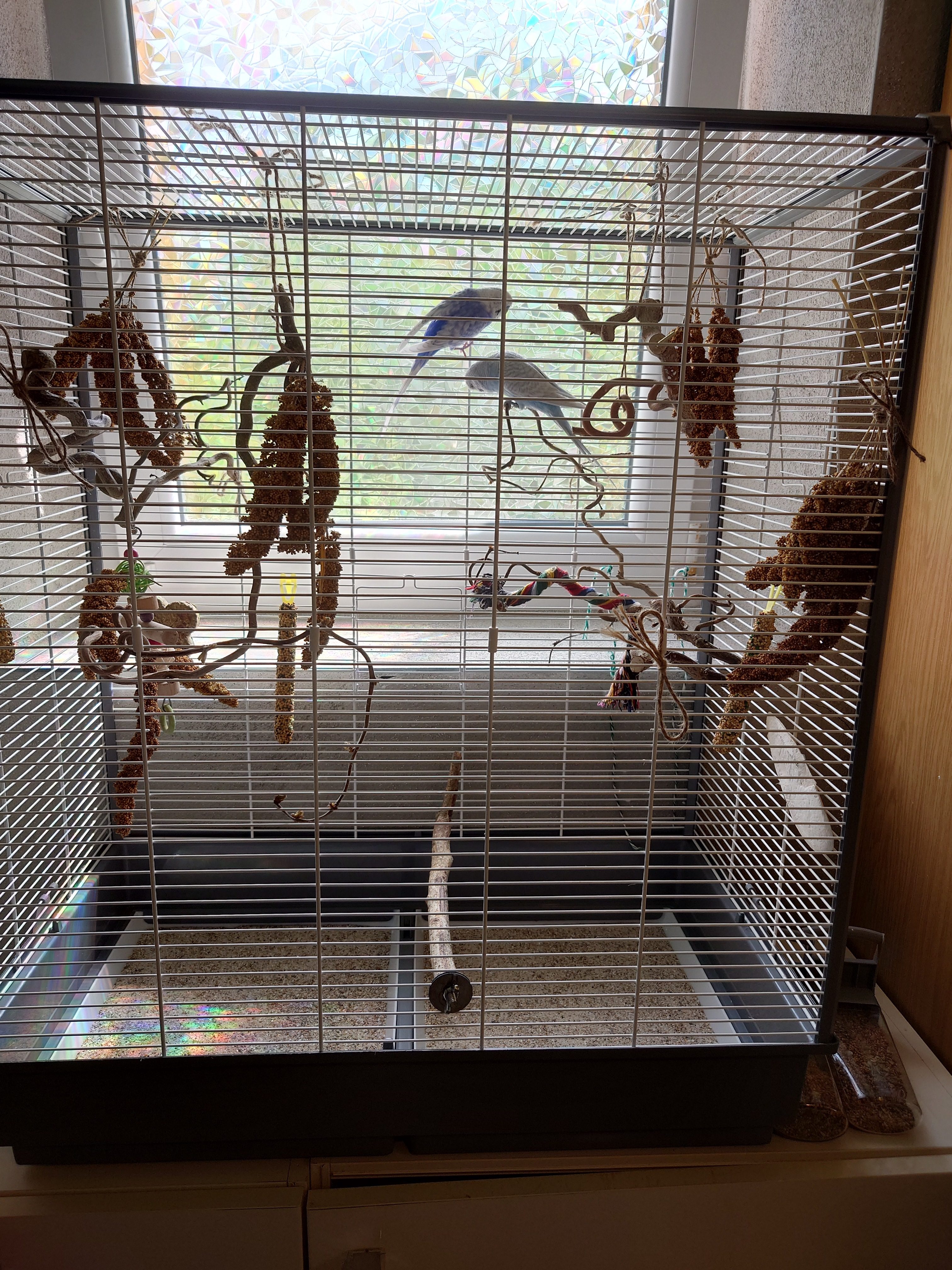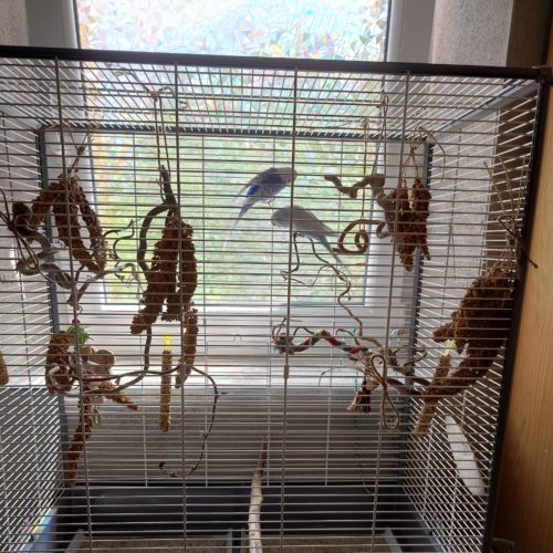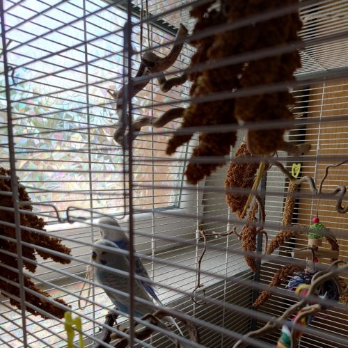 Vor kurzem sind wir umgezogen in eine kleine Wohnung und haben kaum mehr Platz für den Käfig. Feder und Brösel, so die Namen der Wellensittiche, leben nun in einem kleinen Abstellraum und haben dadurch sehr wenig Kontakt zu uns.