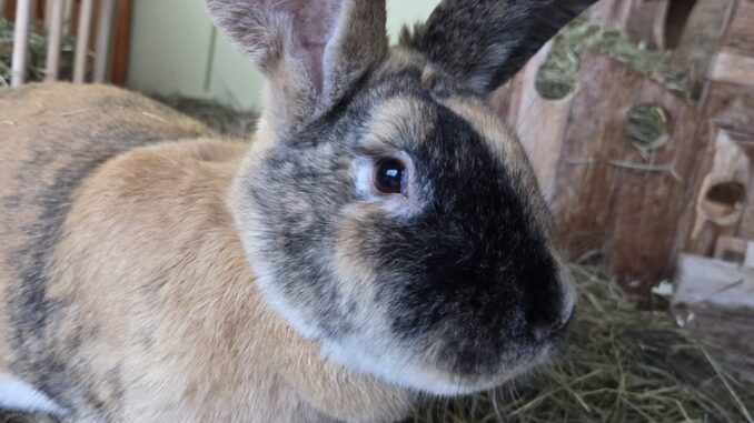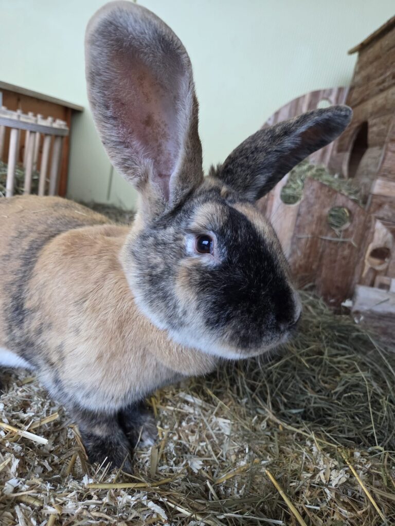 Hallo, mein Name ist Finchen. Ich bin ein Stallkaninchen-Mädchen und sehr groß – fast so groß wie ein Deutscher Riese.