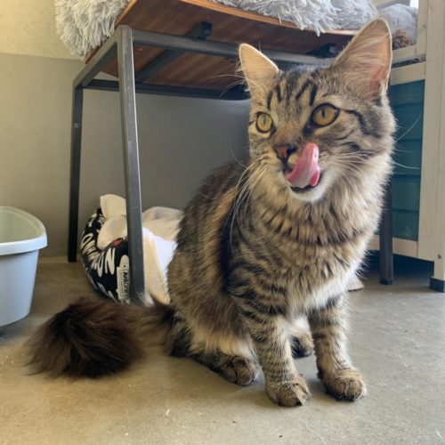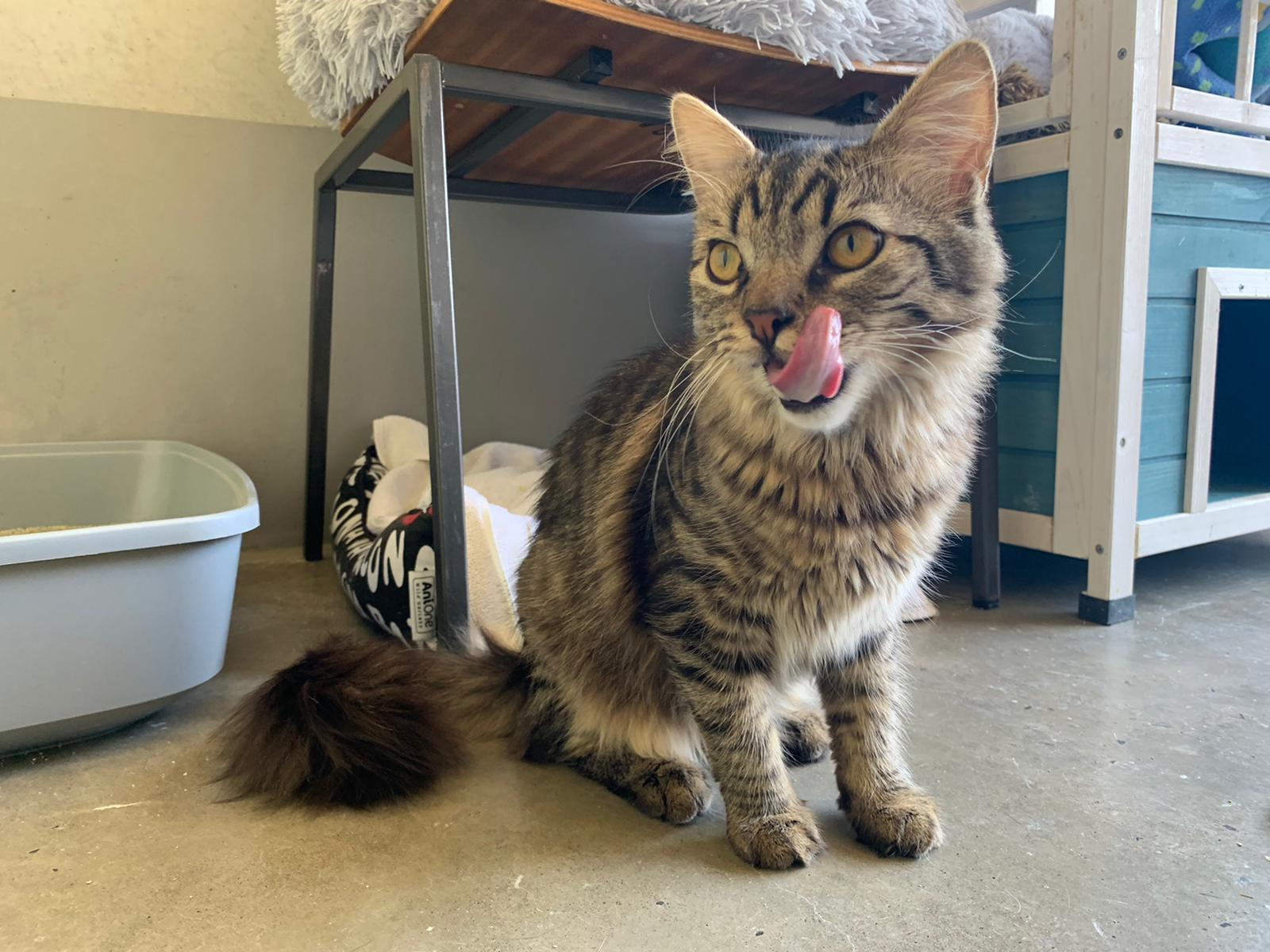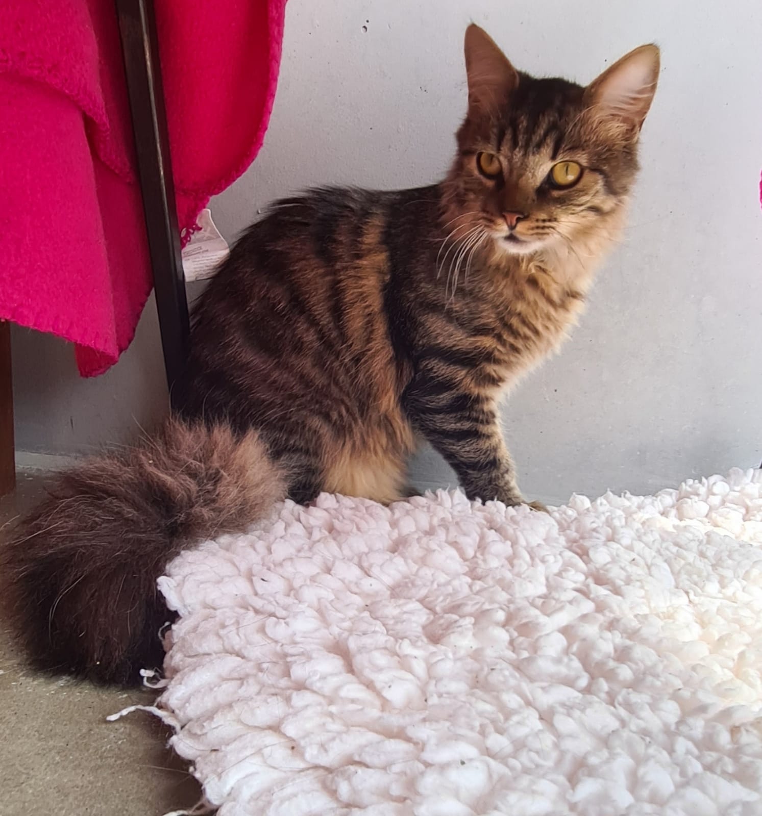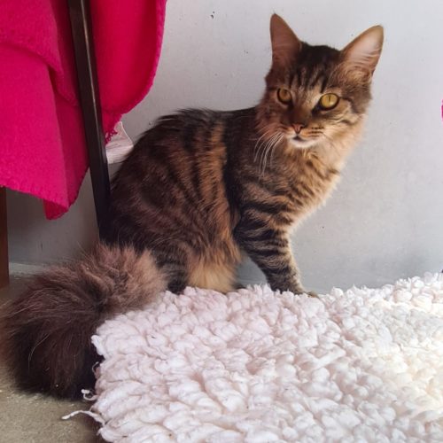Unser kastrierter Gismo ist höchstens ein Jahr alt. Der junge Schmujsekater benötigt aufgrund seines halblangen Fells regelmäßige Pflege.