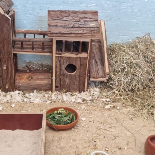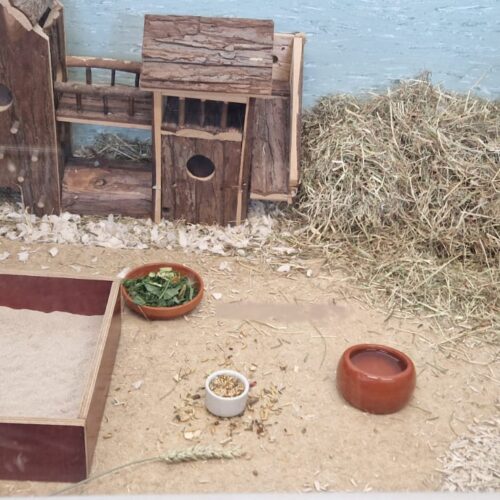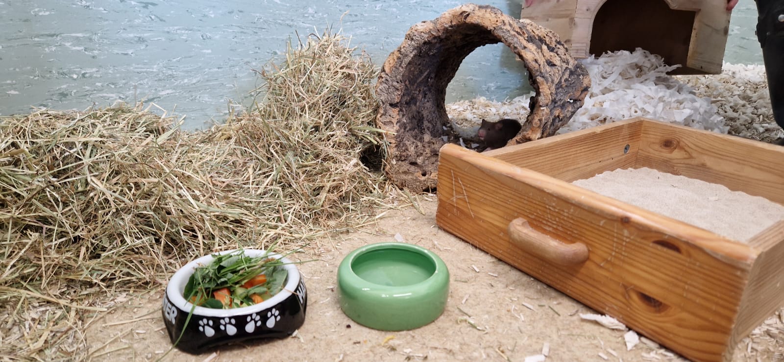 Verstecke: Korkröhren, Keramikverstecke, etc. bieten Sicherheit und können mit Erlebnisfutter wie Flachs, Hirse etc. ergänzt werden.