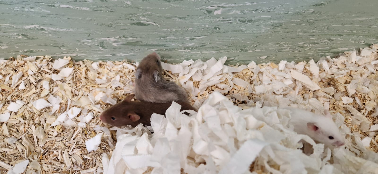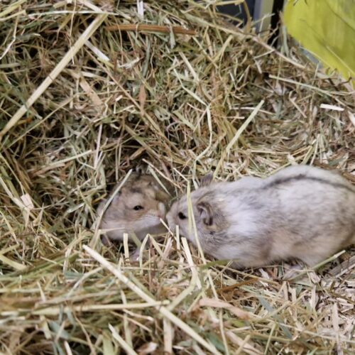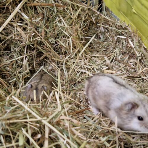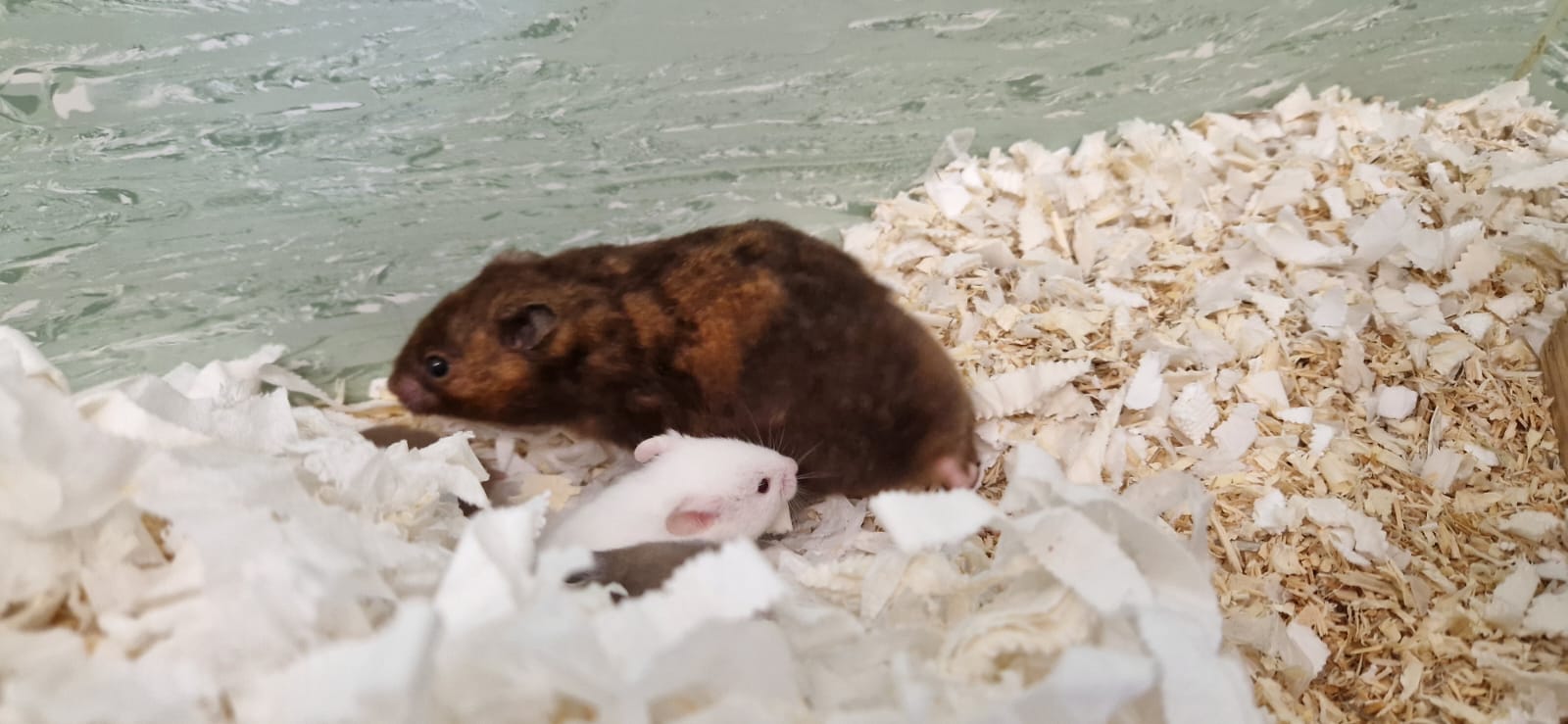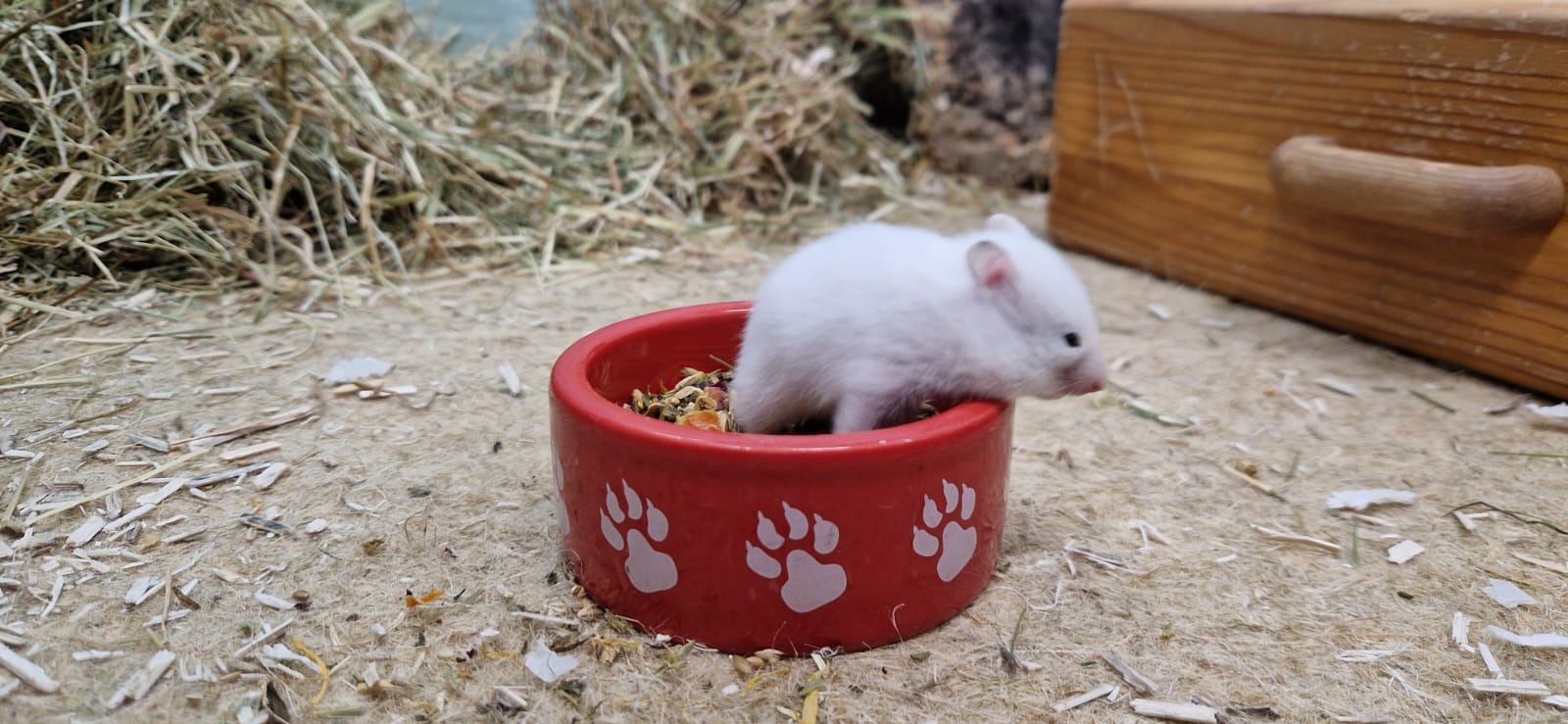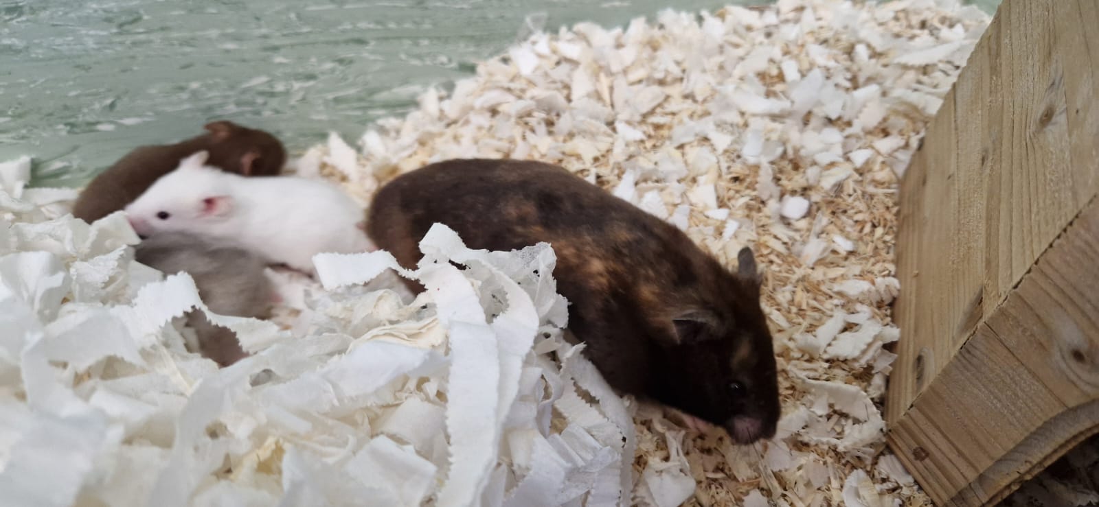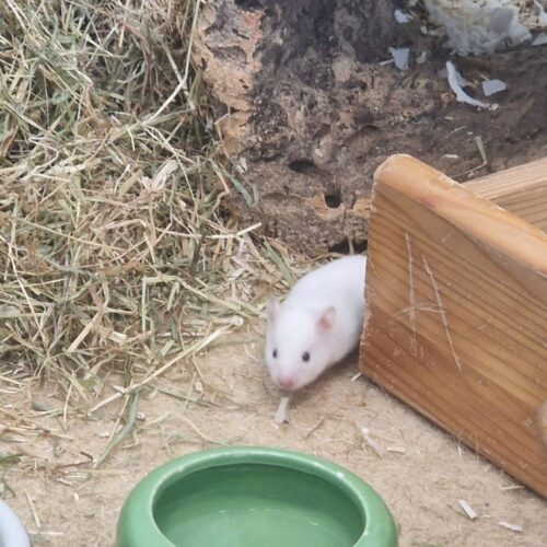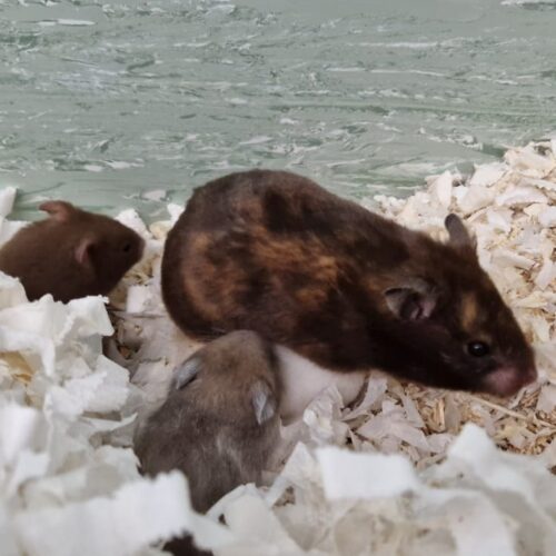 Derzeit warten ca. 20 Hamster bei uns auf ein neues Zuhause. Die kleinen nachtaktiven Gesellen kamen durch eine Beschlagnahmung zu uns. Es handelt sich hier um Goldhamster, Teddyhamster, Dschungarische Zwerghamster in jedem Alter.