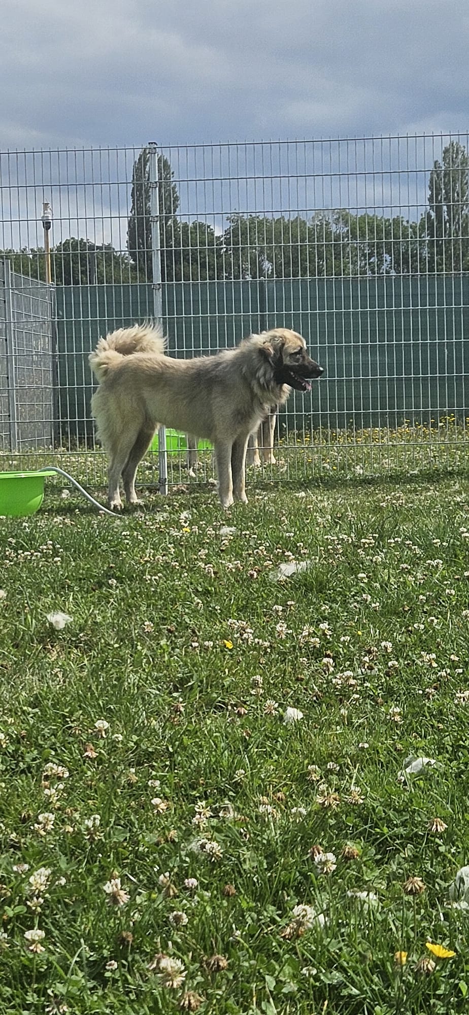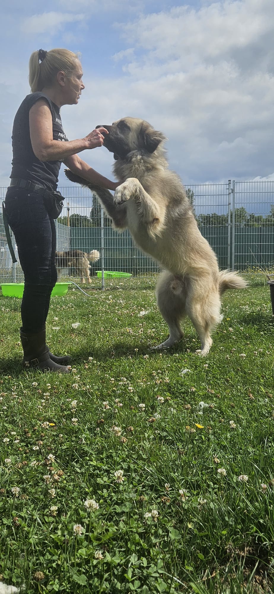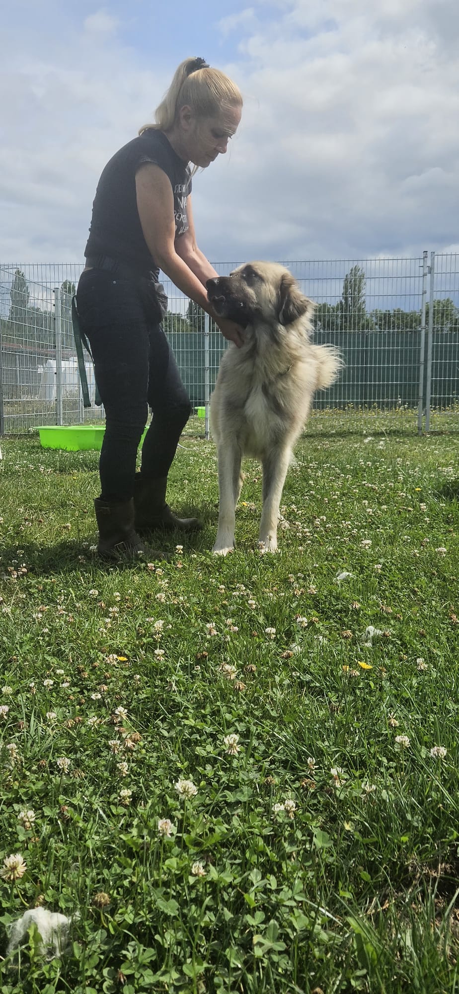 Ich bin etwa 2022 geboren und ein Owtscharka-Mix – also ein richtiger Bär von Hund. Gemeinsam mit meinen Leidensgenossen Randy und Kooper kam ich ins Tierheim, nachdem wir beschlagnahmt wurden. Zuerst landeten wir in einem anderen Tierheim, aber dort war man mit uns nicht so recht vertraut. Es stand sogar im Raum, dass die Ethik-Kommission eingeschaltet werden sollte – was wohl bedeutet hätte, dass wir keine Zukunft mehr gehabt hätten. Ich weiß gar nicht genau, was dieses Wort heißt … aber allein der Gedanke lässt mir eiskalt den Rücken hinunterlaufen. 🥺 Zum Glück hat Britti uns rechtzeitig abgeholt – und uns damit eine zweite Chance geschenkt.