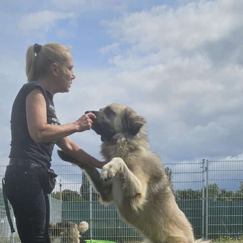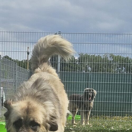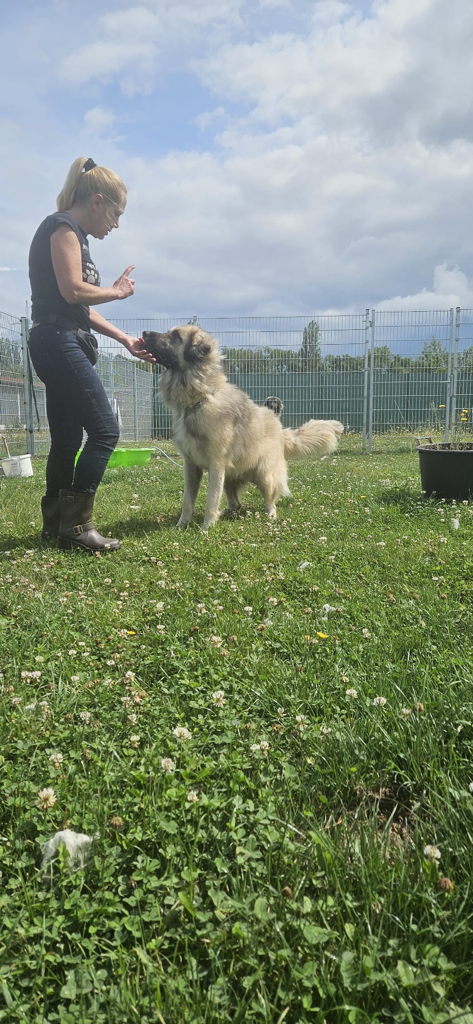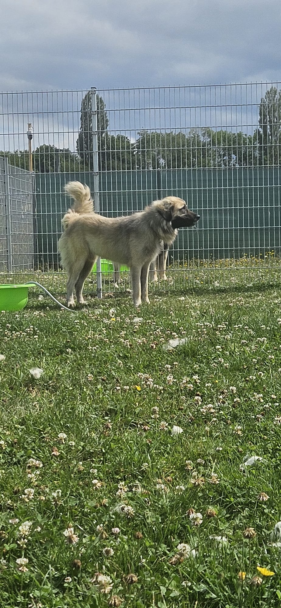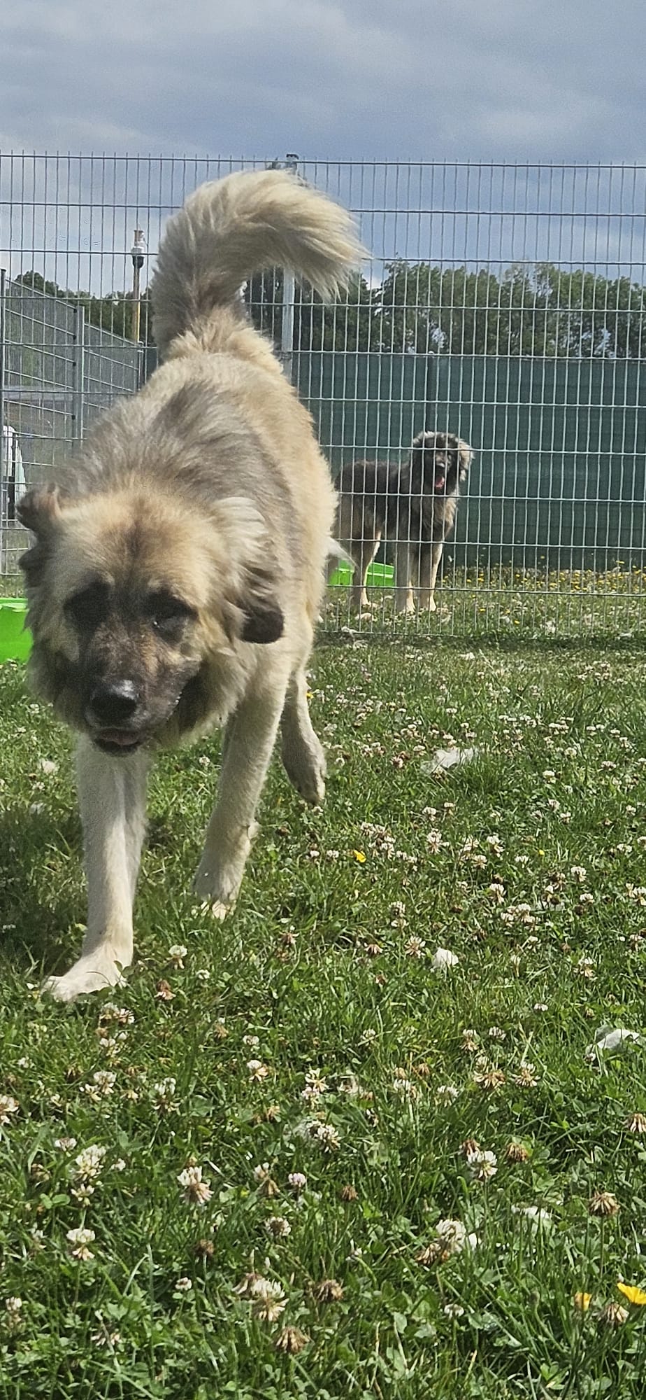 Ich bin etwa 2022 geboren und ein Owtscharka-Mix – also ein richtiger Bär von Hund. Gemeinsam mit meinen Leidensgenossen Randy und Kooper kam ich ins Tierheim, nachdem wir beschlagnahmt wurden. Zuerst landeten wir in einem anderen Tierheim, aber dort war man mit uns nicht so recht vertraut. Es stand sogar im Raum, dass die Ethik-Kommission eingeschaltet werden sollte – was wohl bedeutet hätte, dass wir keine Zukunft mehr gehabt hätten. Ich weiß gar nicht genau, was dieses Wort heißt … aber allein der Gedanke lässt mir eiskalt den Rücken hinunterlaufen. 🥺 Zum Glück hat Britti uns rechtzeitig abgeholt – und uns damit eine zweite Chance geschenkt.