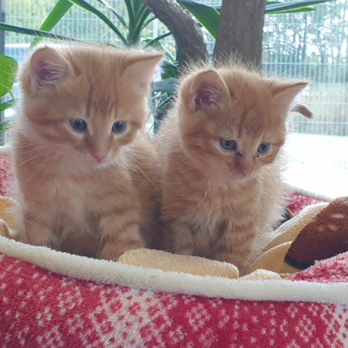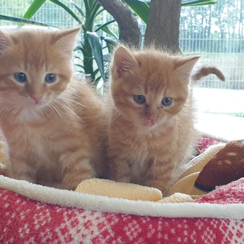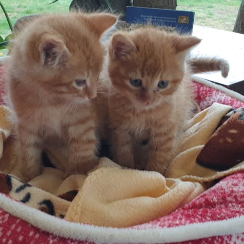 Die beiden Mini-Kater Joggy (der etwas größere) und Bobby (der etwas kleinere) wurden beide getrennt als Findelkinder zu uns gebracht. Die beiden entwickeln sich zwischenzeitlich prächtig. Nachdem die kleinen sich beim Aufwachsen gegenseitig unterstützen und Halt geben, möchten wir ihnen gerne einen gemeinsamen Start in ihr neues Leben ermöglichen und die beiden nicht trennen.