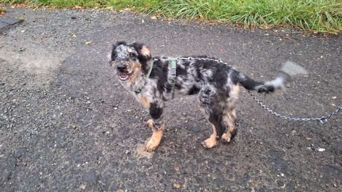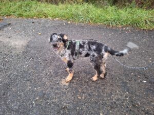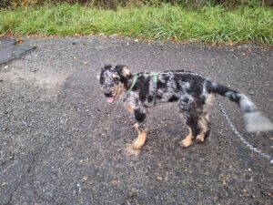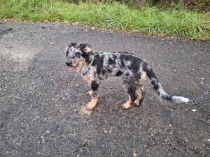 Marlene wurde im August 2025 geboren und ist komplett geimpft. Sie ist eine junge, temperamentvolle Hündin, die vermutlich ein Beauceron-Mix ist – also ein französischer Hütehund, möglicherweise mit Jagdhundanteil.