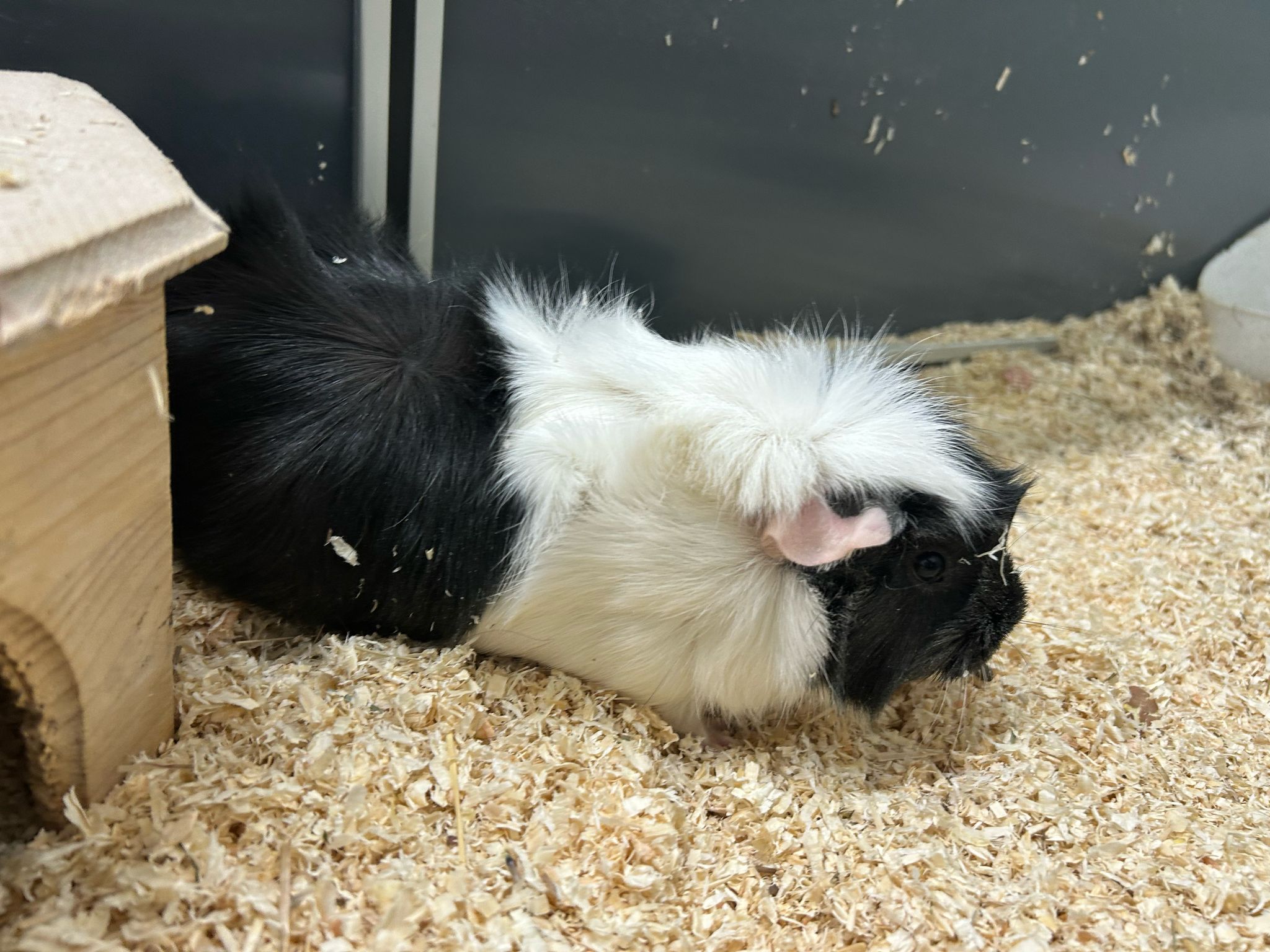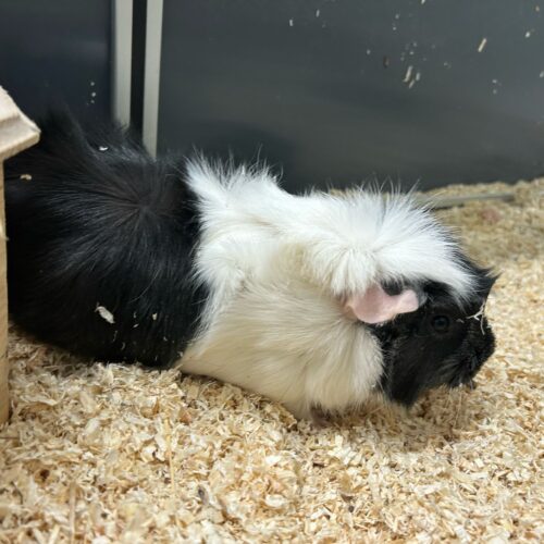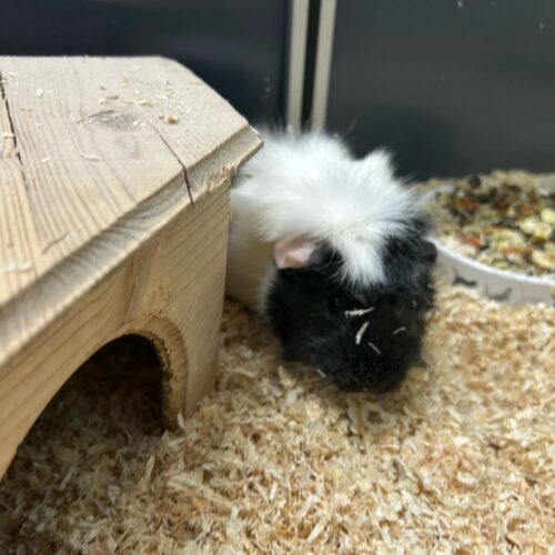 Update: von den vier Meerschweinchen wohnen derzeit noch zwei (1 x männl., 1 x weibl.) bei uns.