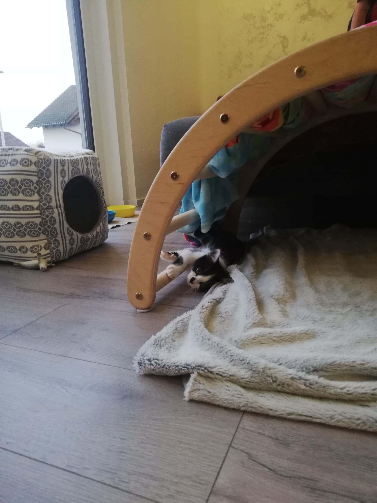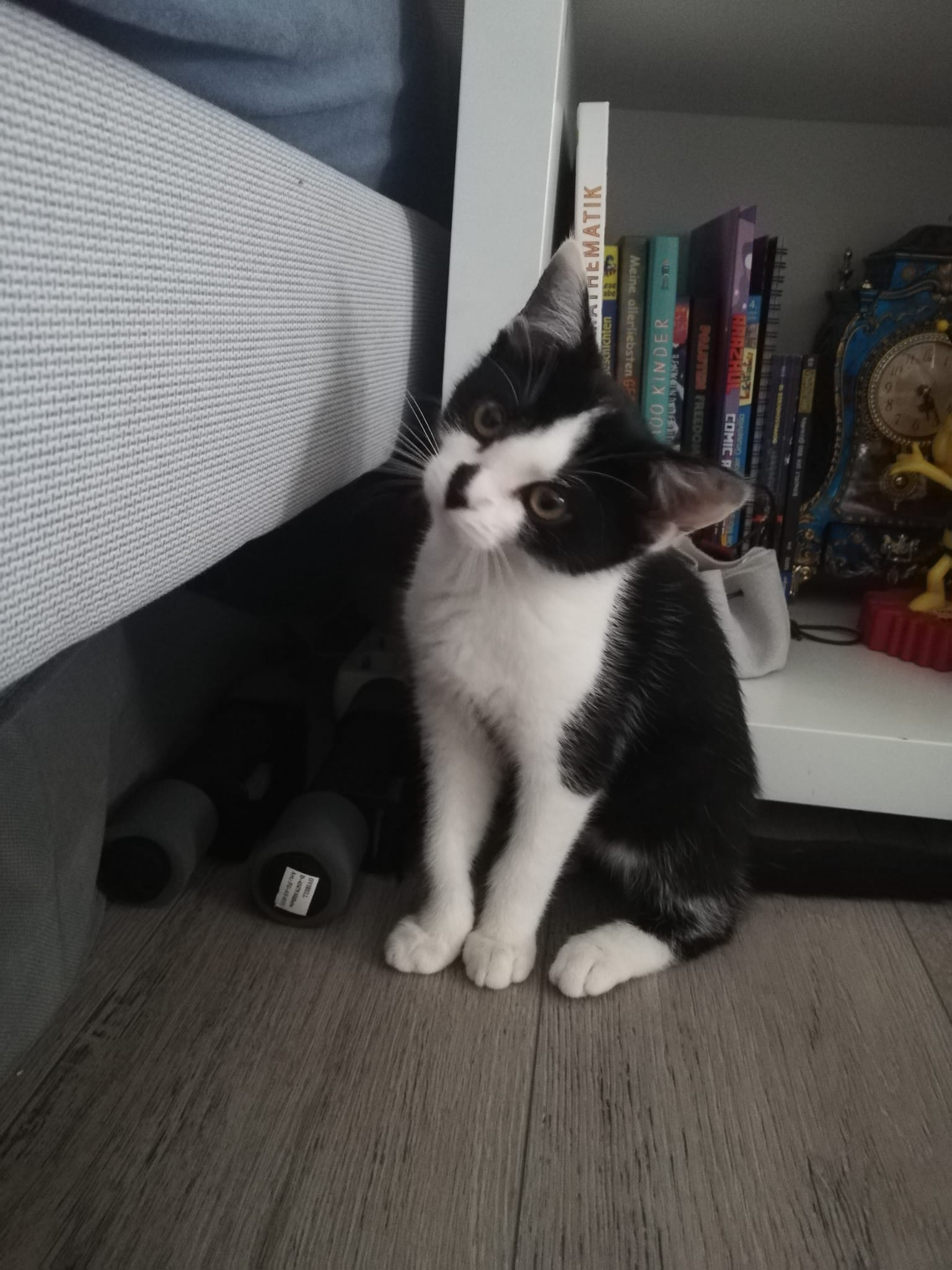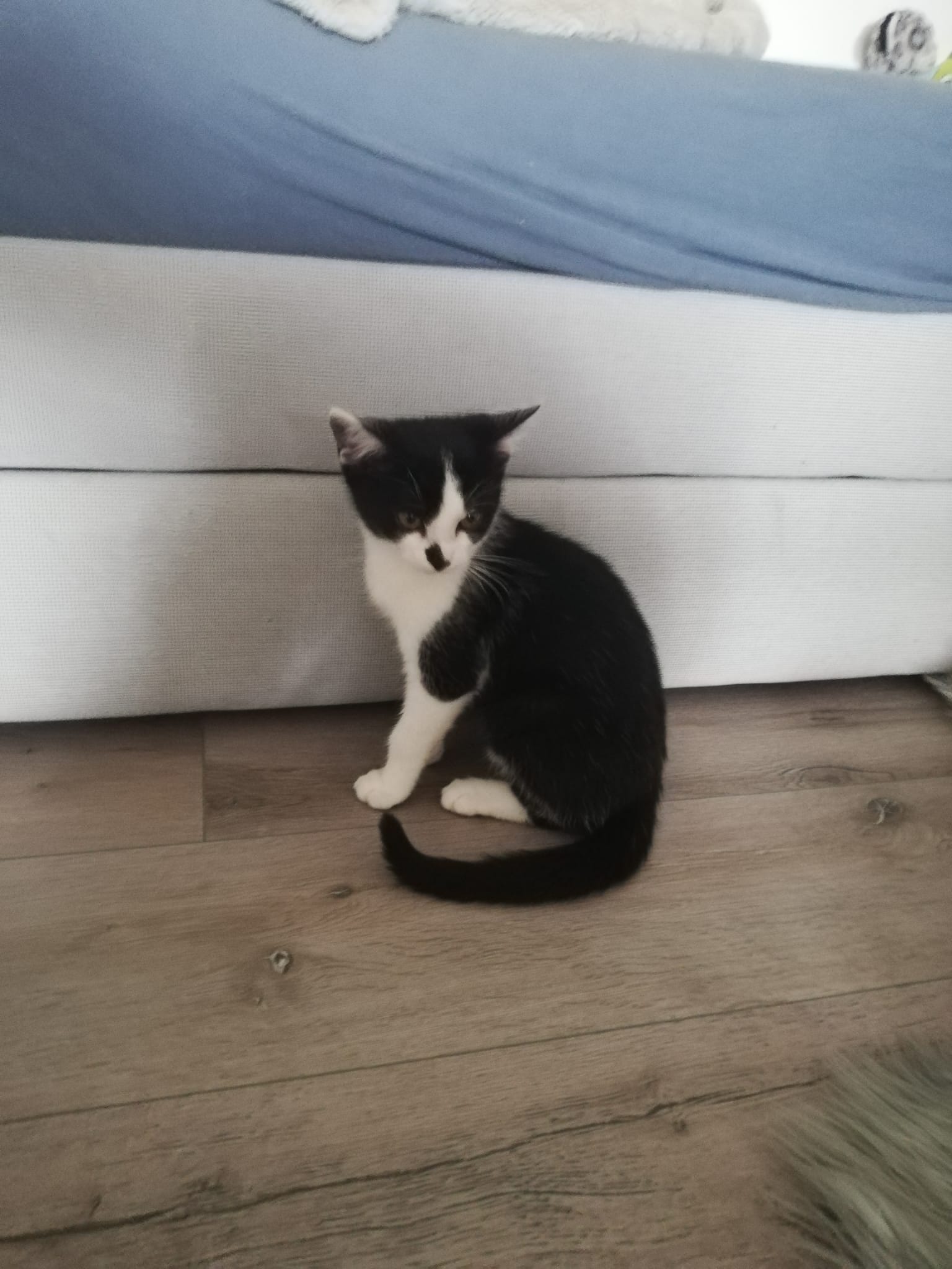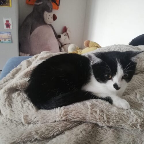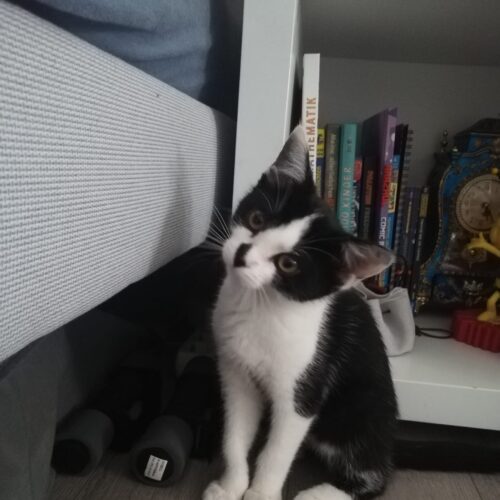 Hallo ihr lieben Menschen. Mein Name ist Mimi und ich bin ein zartes Katzenmädchen, das gerne auch mal hoch springt um das lustige Mäuschen, das meine jetzige Familie schwingt, zu fangen. Am Anfang bin auch ich sehr schüchtern und brauche meine Kennenlern-Zeit und einen lieben geduldigen Menschen, der mir diese eingesteht. Danach bin ich für jeden Spaß zu haben und liebe Streichel- und Kuscheleinheiten. Allerdings machen mir trotzdem hin und wieder schnelle und ruckartige Bewegungen Angst und ich schrecke zurück um mir die Situation erstmal anzuschauen.