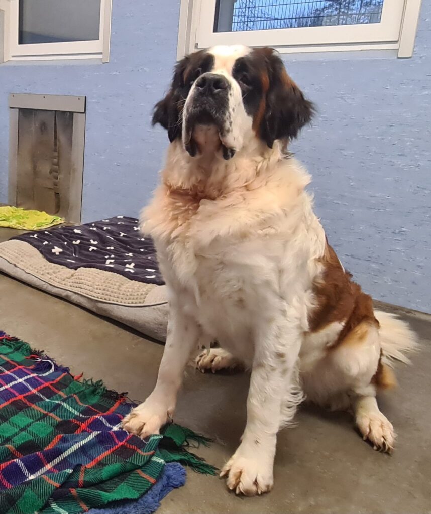 Ich lebe aktuell in einer Hundegruppe im Tierheim, wo ich mit allen wunderbar zurecht komme. Bin ich allerdings draußen an der Leine, zeige ich meine Kräfte, weshalb die Leinenführigkeit mit mir trainiert werden muss. Die Tierheim-Mitarbeiter nennen mich liebevoll „Zaubermaus“. Das liegt wohl daran, dass ich so zauberhaft bin. Ich komme mit allen und jedem gut klar. Ich bin das Paradebeispiel für ein liebes und nettes, aber etwas zu groß geratenes Hundekindes. Familienanschluss ist für mich das A und O, denn wie alle Bernardiner bin ich sehr auf Menschen bezogen und familiär anhänglich.