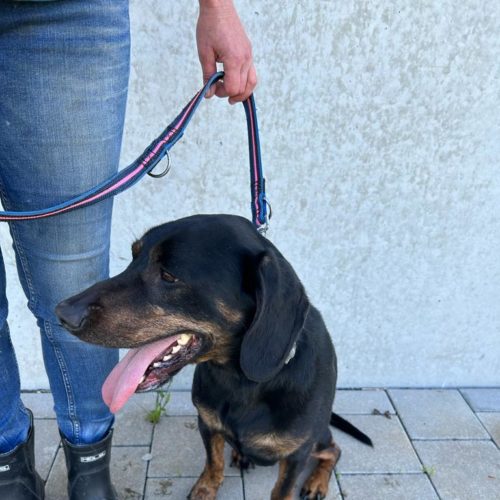 Der 7-jährige Seppl ist ein Bracken-Mix. Er wurde vormals jagdlich geführt und hat natürlich einen ausgeprägten Jagdtrieb.