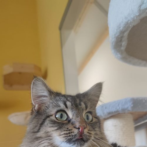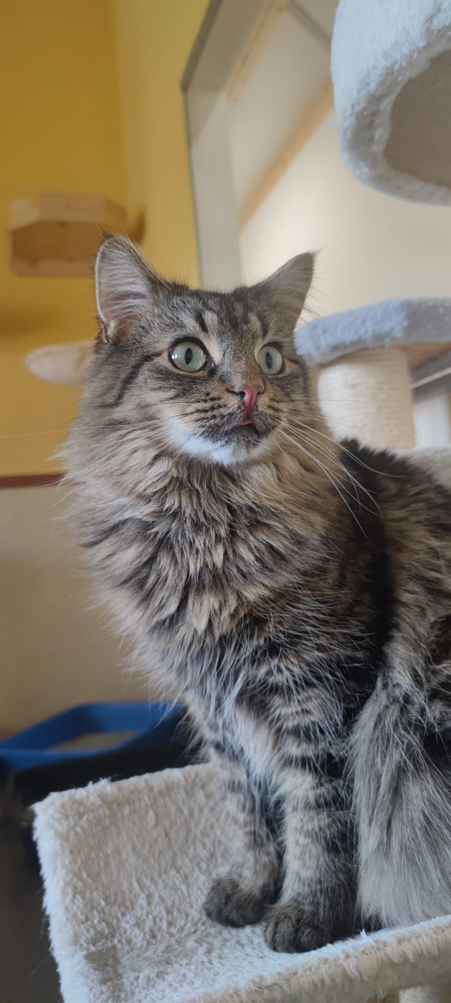 Der verschmuste Kater Simba ist ca. 2020 geboren und kastriert. Simba kommt zwar mit anderen Katzen klar, braucht sie aber nicht in seinem Leben. Deshalb wäre wünschenswert, wenn der zurückhaltende Simba einen schönen Kuschelplatz bekommt, wo er ein Einzelprinz sein darf.
