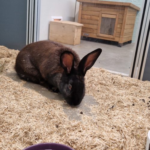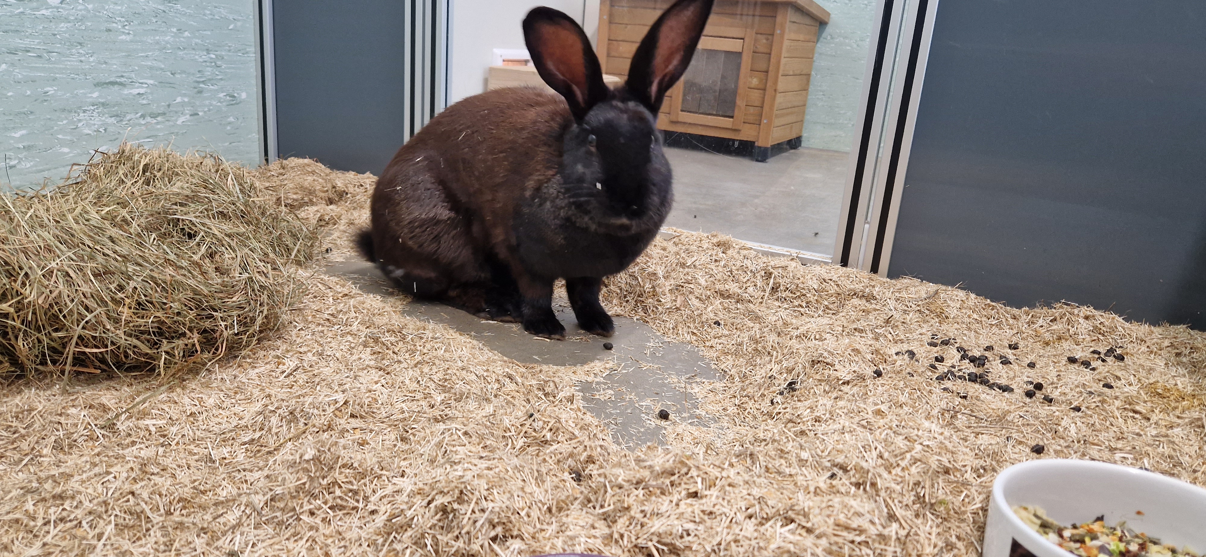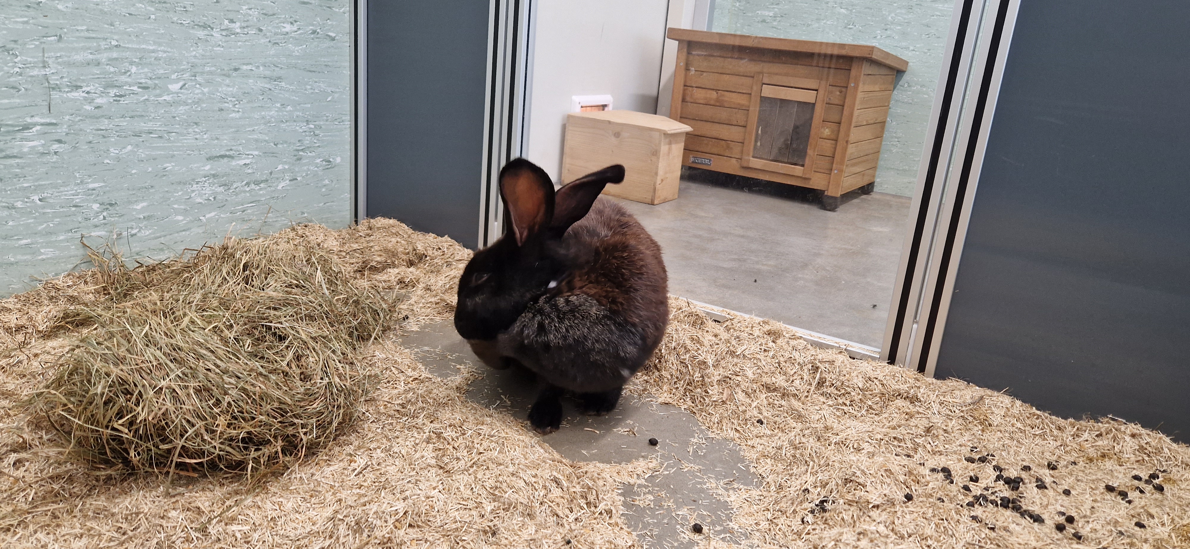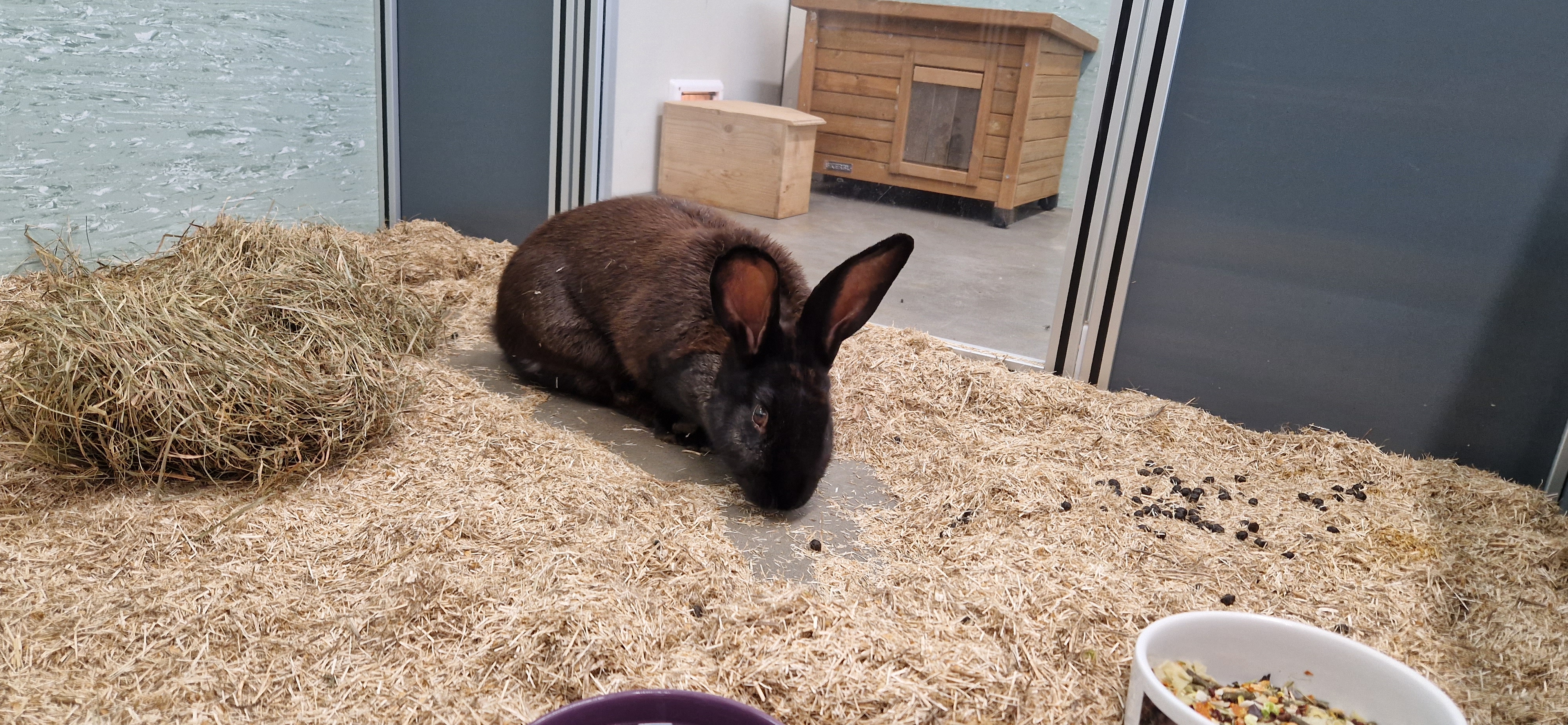 Stallkaninchen-Dame Oreo wartet bei uns im Kleintierbereich gemeinsam mit Biene auf ein neues Zuhause. Zunächst hatten die beiden Anfangsschwierigkeiten beim Kennenlernen. Nun harmonieren beide so gut miteinander, dass diese zusammen in ein neues Leben starten sollen. Die zutrauliche Häsin ist ca. zwei bis drei Jahre alt und sucht dringend einen neuen Wirkungskreis in einem schönen Gehege mit Freigangmöglichkeiten.