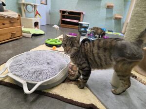 Anfangs ist Süßbert noch vorsichtig gegenüber Menschen. Aber sobald er merkt, dass ihm niemand wehtun will, öffnet er sein Herz – und das Schmusen beginnt. Seine Katzenfreunde liebt er heiß und innig, er kuschelt mit ihnen voller Zärtlichkeit.