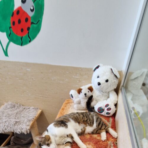 Wer die aktuellen Bilder unseres kleinen Sonnenscheins „Sunny“ (geb. ca. 2021) sieht, kann kaum glauben, in welchem Zustand sie zu uns kam (s. unser Facebook-Post vom 27.05.2024). Sunny wurde uns als Unfallopfer gebracht, musste neben anderen kleineren Verletzungen zunächst am Kiefer operiert und über eine Sonde ernährt werden.
