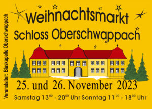 Weihnachtsmarkt Schloß Oberschwappach 19.11.2022 – 20.11.2022 17. Oktober 2022 TI Haßberge Aktuelles 0 Wir freuen uns auf Euch und tolle Gespräche innerhalb des Weihnachtsmarkts im Schloß Oberschwappach. Genaue Zeiten und Details finden Sie hier.