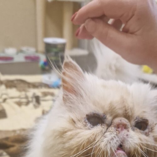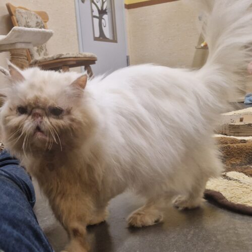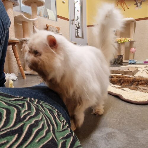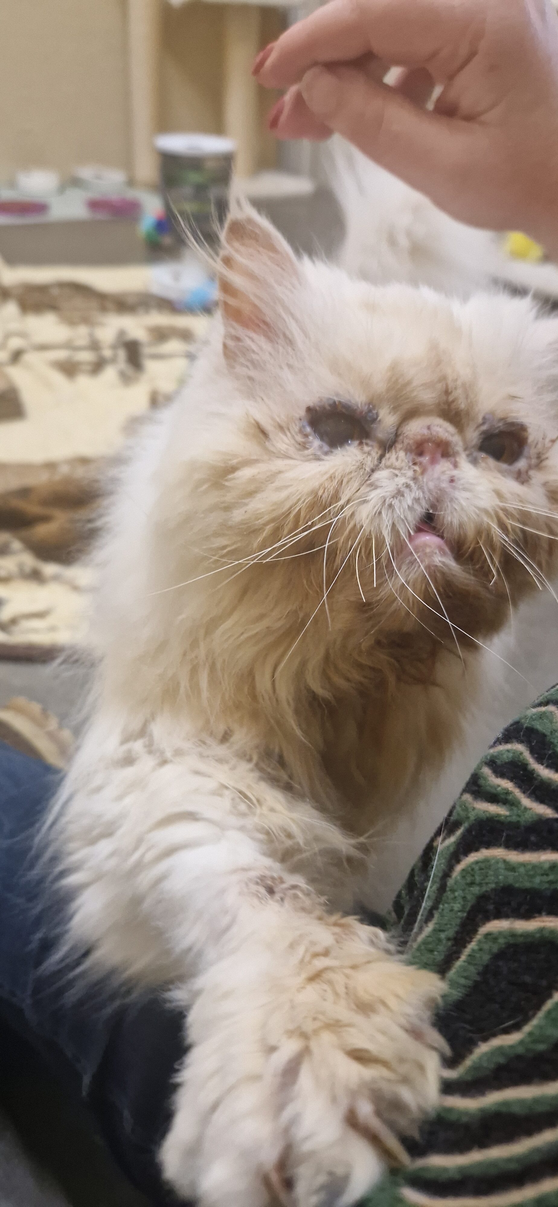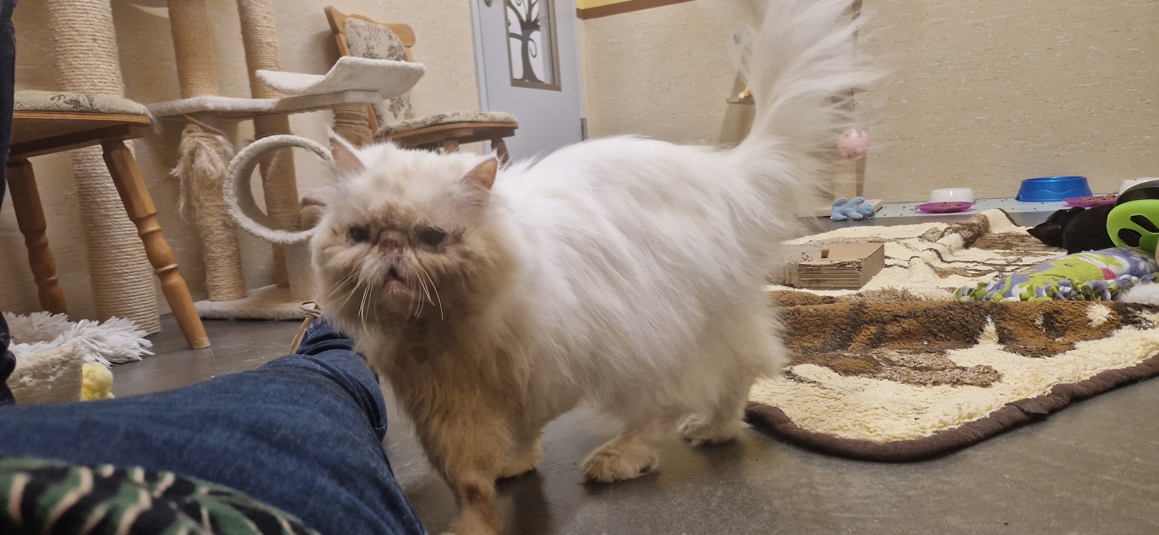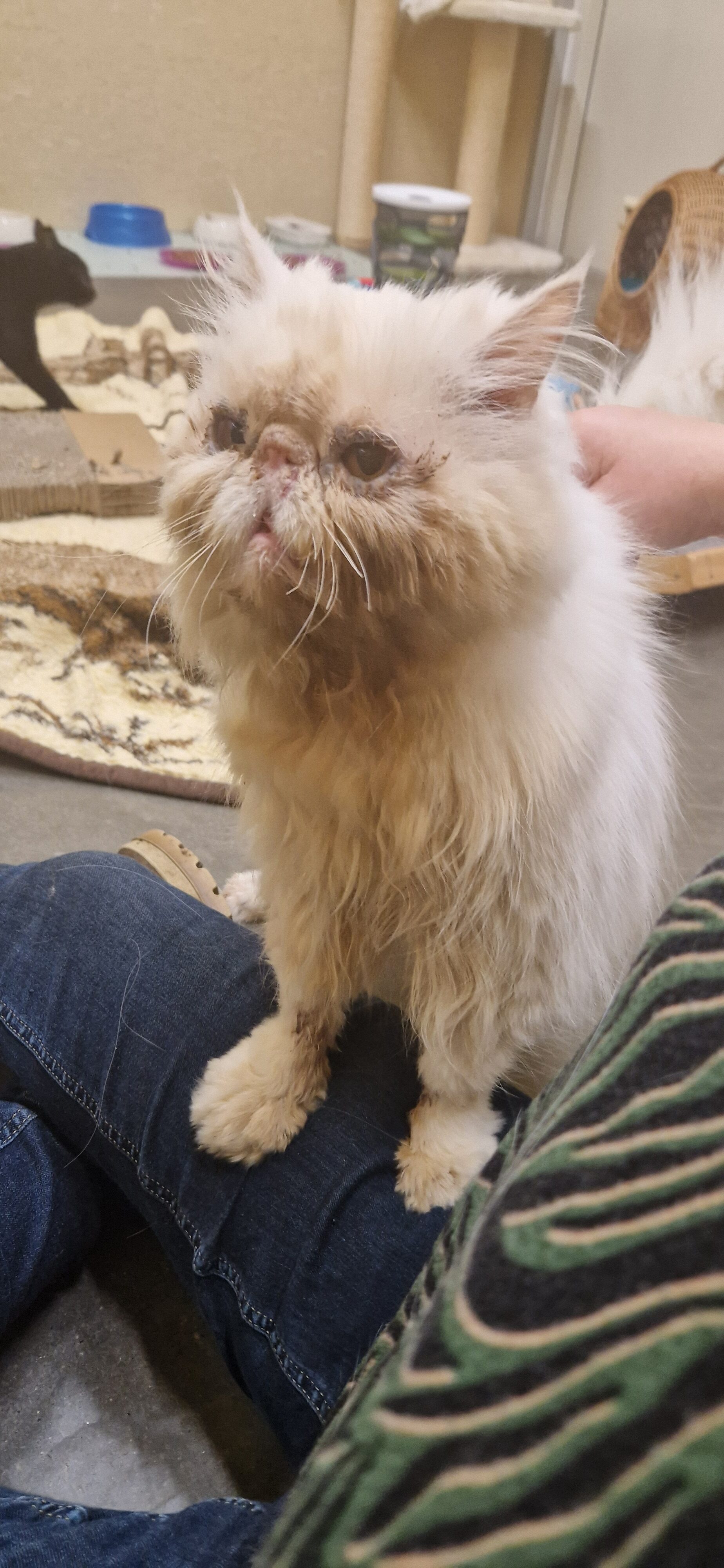 Kater Whity kam aufgrund einer Beschlagnahmung gemeinsam mit fünf Perserdamen von einem Vermehrer zu uns. Leider sind die Folgen der Inzucht bei diesem ansonsten wundervollen Traumkater nicht zu verbergen, was viele Interessenten zunächst abschreckte.