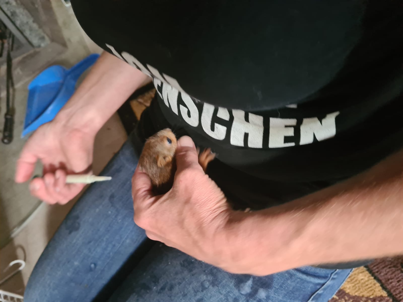 ein Eichhörnchen (aus dem Nest gefallen und von der Mutti nicht mehr zurückgeholt),