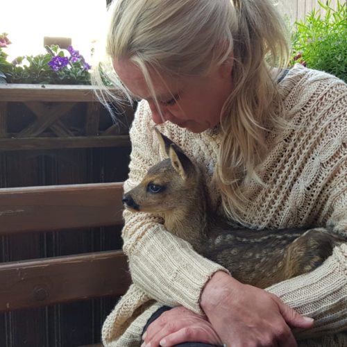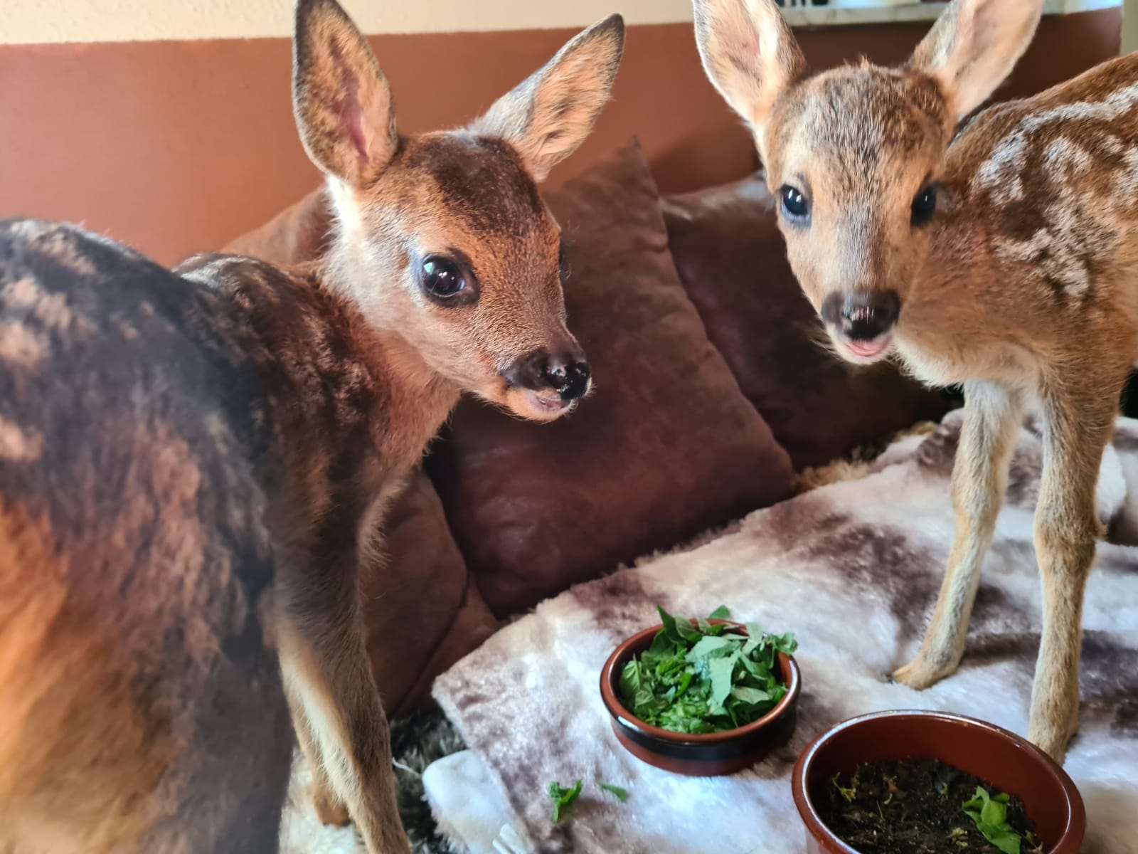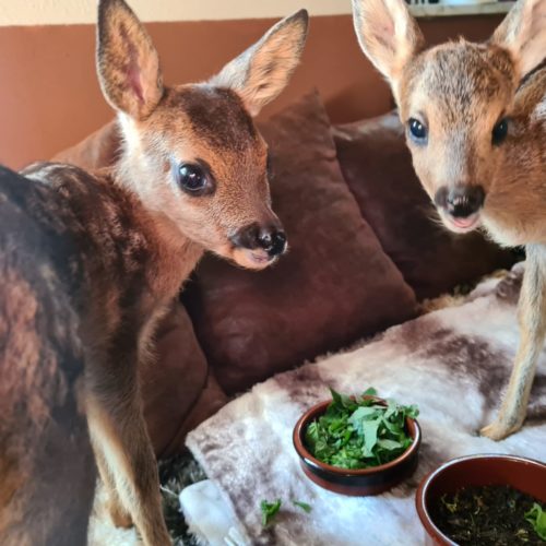 Jedes der Rehkitze wird ca. 6 Monate lang mit Ziegenmilch gesäugt.